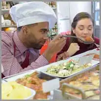 వారు రుచికరమైన భోజనం సిద్ధం చేస్తారు.